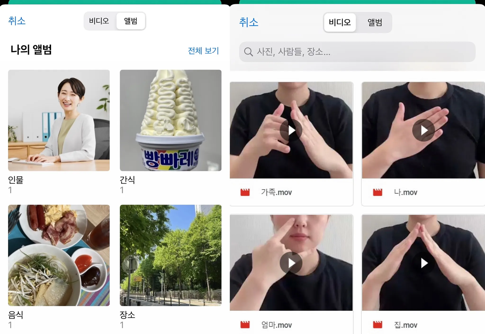 Photo & Sign 앱에서는 대체의사소통 수단인 ‘수어’ 활용이 가능합니다.